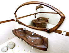 Two-seater bathtub with elegant soaking through the Bathtub wall plus waterfall.